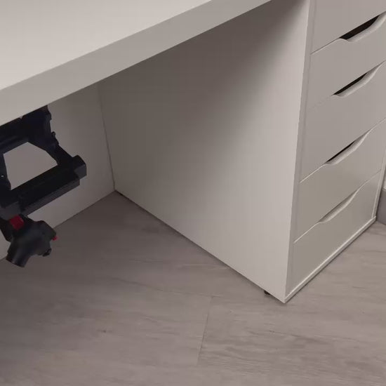 The Black Widow Stowaway mounts have a simple yet ingenious mechanism to fold away when not in use. This design enables you to effortlessly transition between office space and cockpit, maintaining the full functionality of both with no compromises.