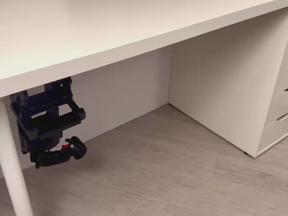 The Black Widow Stowaway mounts have a simple yet ingenious mechanism to fold away when not in use. This design enables you to effortlessly transition between office space and cockpit, maintaining the full functionality of both with no compromises.