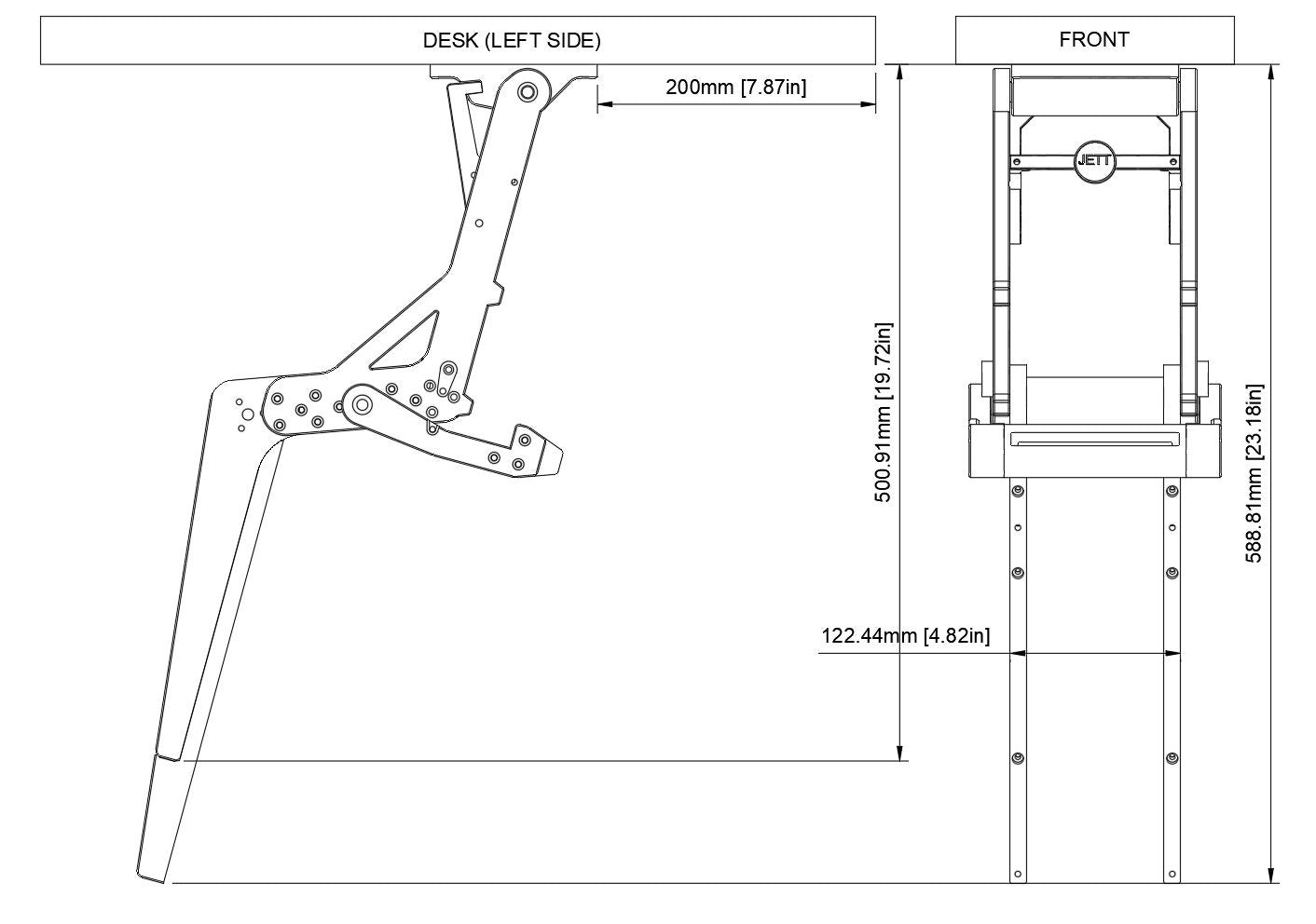 To release them from their stowed Position press the "JETT" button and rotate them upwards towards your desk.Make sure to push forward the lock handle at the top of the mount. To stow them simply pull on the lock handle and gently rotate them backwards until you hear them lock.